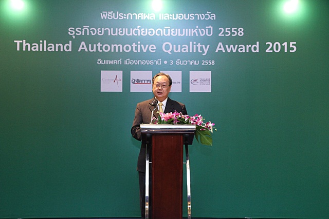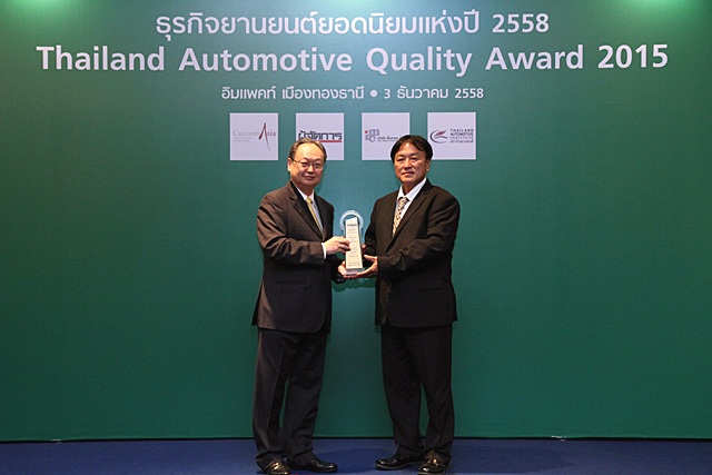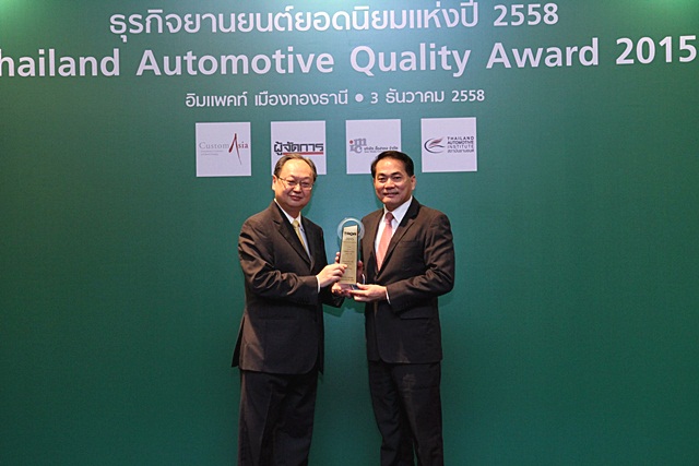 นายวิเชียร เอมประเสริฐสุข รองกรรมการผู้จัดการใหญ่ และนายวุฒิกร สุริยะฉันทนานนท์ ผู้ช่วยกรรมการผู้จัดการใหญ่อาวุโส พร้อมด้วยคณะผู้บริหารระดับสูง บริษัท โตโยต้า มอเตอร์ ประเทศไทย จำกัด ร่วมรับรางวัล "ธุรกิจยานยนต์ยอดนิยมแห่งปี 2558" หรือ TAQA: Thailand Automotive Quality Award 2015 จาก นายสนธิรัตน์ สนธิจิรวงศ์ ที่ปรึกษารัฐมนตรีว่าการกระทรวงอุตสาหกรรม เมื่อวันที่ 3 ธันวาคม ที่ผ่านมา ณ อาคาร ชาเลนเจอร์ฮอลล์ อิมแพ็ค เมืองทองธานี