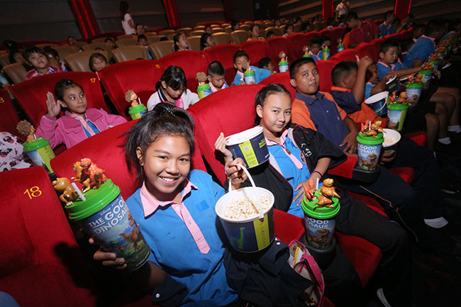 ก่อนเข้าชมภาพยนต์น้องๆได้รับป๊อปคอร์น พร้อมน้ำแก้วใหญ่จากหน้าโรงนำเข้าไปรับประทานระหว่างดูหนัง เป็นบรรยากาศของการดูหนังเต็มครบออปชั่น พร้อมกับเหล่าพี่อาสาสมัครพนักงานคนรุ่นใหม่ของนิสสัน ที่เรียกว่า Nissan CSR Team ที่มาช่วยดูแลน้องๆระหว่างดูหนังให้มีความสุขไม่ว่าจะคอยจูงมือพาเข้าโรง พาไปห้องน้ำและคอยตอบคำซักถามของน้องๆ ขณะที่คุณพิมพร ศิริวรรณ รองกรรมการผู้จัดการใหญ่สายงานประชาสัมพันธ์และซี เอส อาร์ บริษัท นิสสัน มอเตอร์ (ประเทศไทย) จำกัด ซึ่งนำทีมจิตอาสา Nissan CSR Team จากแผนกต่างๆ มาร่วมดูแลน้องๆ กล่าวว่า เป็นที่น่าดีใจที่แม้จะเป็นวันหยุด แต่พนักงานหนุ่มสาว คนรุ่นใหม่ของนิสสัน ก็มีจิตอาสา มาร่วมกิจกรรม ให้ความสุข สร้างรอยยิ้มให้กับน้องๆ กันอย่างชนิดที่เรียกว่าใจเกินร้อย หลายคนเมื่อเข้าไปในโรงภาพยนตร์ ยินดีที่จะนั่งกับพื้นตรงทางบันได เพื่อคอยดูแลน้องๆ ที่ จะไปเข้าห้องน้ำในระหว่างที่ฉายภาพยนตร์ รวมถึงจูงน้องพาน้องไปส่งที่รถ