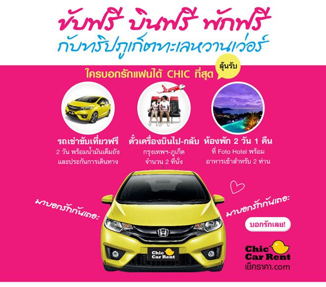 บอกรักสุด CHIC ลุ้น "บินฟรี ขับฟรี พักฟรี กับทริปภูเก็ตทะเลหวานเว่อร์"