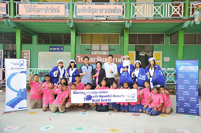 "Hyundai Blue Santa" เป็นกิจกรรมตอบแทนสังคม ของบริษัท ฮุนได มอเตอร์ คอมปานี ที่สนับสนุนให้บริษัท ในแต่ละภูมิภาคทั่วโลก ตระหนักถึงหน้าที่และความรับผิดชอบต่อชุมชน สังคม และประเทศชาติ รวมถึงการทำความดีที่เป็นประโยชน์ต่อสังคม ซึ่งบริษัท ฮุนได มอเตอร์ (ไทยแลนด์) จำกัด ได้สานต่อนโยบายของบริษัทแม่อย่างต่อเนื่อง เพื่อสร้างสรรค์กิจกรรมดีๆ เพื่อสังคมสืบต่อไป