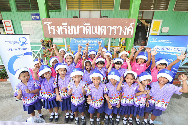 บริษัท ฮุนได มอเตอร์ (ไทยแลนด์) จำกัด ผู้นำเข้าและจัดจำหน่ายรถยนต์ฮุนไดอย่างเป็นทางการแต่เพียงผู้เดียวในประเทศไทย จัดกิจกรรมเพื่อสังคมภายใต้ชื่อ "Hyundai Blue Santa" ส่งมอบความสุขต่อเนื่องจากเทศกาลปีใหม่และวันเด็กแห่งชาติด้วยการนำคณะผู้บริหารและพนักงาน เป็นเจ้าภาพจัดเลี้ยงอาหารกลางวันให้กับน้องๆโรงเรียนวัดเมตารางค์ อ.สามโคก จ.ปทุมธานี ซึ่งมีนักเรียนตั้งแต่ระดับชั้นอนุบาล ถึงชั้นประถมศึกษาปีที่ 1-6 จำนวนกว่า 60 คน พร้อมกันนี้ได้มอบขนมและสิ่งของเครื่องใช้ที่โรงเรียนขาดแคลน ได้แก่ ยาสามัญประจำบ้าน, ข้าวสาร อาหารแห้ง, ยาสีฟัน แปรงสีฟัน และชุดนักเรียน โดยมีพนักงานฮุนไดแต่งกายเป็นซานต้าใจดี แจกขนมและร่วมกิจกรรมสันทนาการกับน้องๆ ด้วย