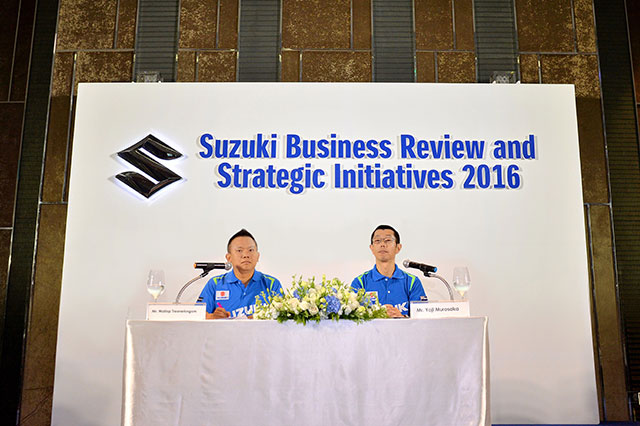 บริษัท ซูซูกิ มอเตอร์ (ประเทศไทย) จำกัด แนะนำผู้นำองค์กรคนใหม่ มร.โยจิ มุโรซากะ กรรมการผู้จัดการใหญ่ บริษัท ซูซูกิ มอเตอร์ (ประเทศไทย) จำกัด คนล่าสุด พร้อมกันนี้ นายวัลลภ ตรีฤกษ์งาม ผู้อำนวยการฝ่ายขายและการตลาด บริษัท ซูซูกิ มอเตอร์ (ประเทศไทย) จำกัด ร่วมแถลงผลประกอบการประจำปี 2558 และนโยบายการดำเนินงานในปี 2559 อีกทั้งเปิดตัวแบรนด์แอมบาสเดอร์ซูซูกิ