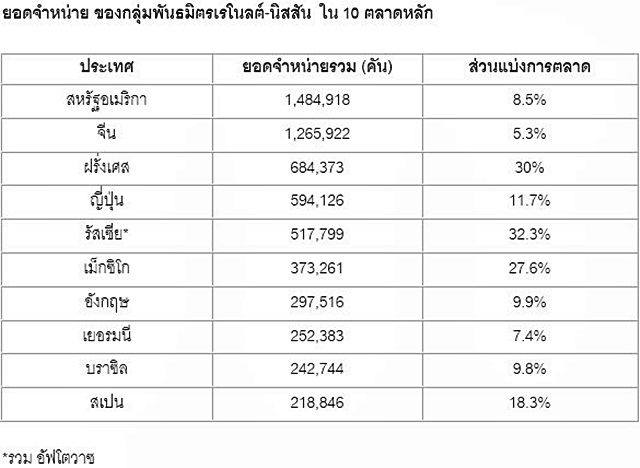 เรโนลต์-นิสสัน ครองที่ 4 ยอดขายทั่วโลก