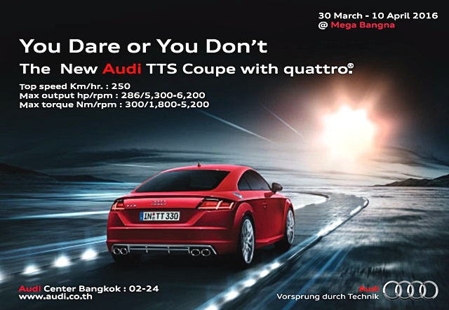 อย่าลืม! พบกับงานสุดพิเศษพร้อมข้อเสนอเร้าใจอีกเพียบใน กิจกรรมโรดโชว์ "Audi & KIA Auto Show 2016" ระหว่างวันที่ 30 มีนาคม ถึง 10 เมษายน 2559 ณ ห้างสรรพสินค้าเมกา บางนา