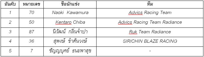 โคโรลล่า อัลติส วันเมคเรซ คลาสบี มีรถลงแข่งขันทั้งสิ้น 13 คัน แข่งขัน 22 รอบสนาม โดยยอดนักแข่งจากประเทศญี่ปุ่น "Naoki Kawamura" ใช้ประสบการณ์จากการสนามแข่งขันสนามนี้ โชว์ฟอร์มสุดเฉียบ ขึ้นนำตั้งแต่ออกสตาร์ตจนจบการแข่งขัน คว้าแชมป์ไปครอง โดยมี "Kentaro Chiba" ตามมาในอันดับ 2 และอันดับที่ 3 ตกเป็นของ "นิวัฒน์ กลิ่นจำปา"