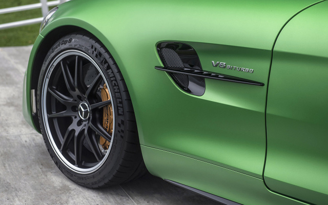 หัวใจสำคัญของ Mercedes-AMG GT R ปี 2018 คือเครื่องยนต์วี 8 ทวินเทอร์โบ ความจุ 4 ลิตร ให้กำลังสูงสุดถึง 577 แรงม้า แรงบิดสูงสุด 516 ปอนด์-ฟุต อัตราเร่ง 0-60 ไมล์/ชั่วโมง ใน 3.5 วินาที ทำความเร็วสูงสุด 198 ไมล์/ชั่วโมง สปอยเลอร์หลังคาร์บอนไฟเบอร์ สามารถสร้างแรงกด 342 ปอนด์ซึ่งทำให้รถทำความเร็วได้ดีขึ้นเมื่อเปรียบเทียบกับเอเอ็มจี จีทีรุ่นมาตรฐาน ส่วนล้ออัลลอยด้านหน้าขนาด 19 นิ้ว ด้านหลังขนาด 20 นิ้ว