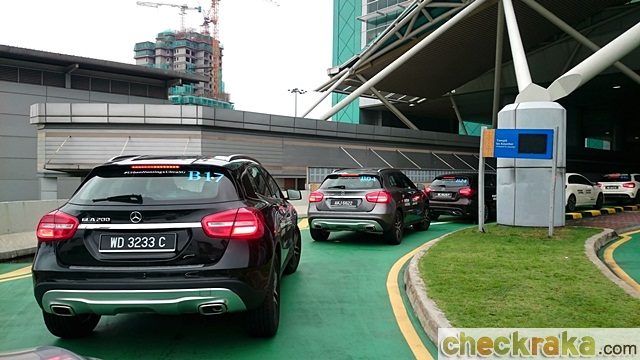 ในระหว่างทางได้มีการสลับคนขับ ผู้เขียนได้เปลี่ยนมานั่งพักเพื่อบันทึกภาพบ้าง ตลอดทางการ จราจรหนาแน่นเป็นช่วงๆ มีบ้างที่โล่งจนใช้ความเร็วได้เต็มที่ ทำให้ได้สัมผัสถึงสมรรถนะอัน สุดยอดของ GLA45 ที่ให้อัตราเร่งเร้าใจ ระบบเบรกที่ให้ความรู้สึกตอบรับดีมาก จนมั่นใจได้ว่า ชะลอ-หยุดได้ดั่งใจในทุกช่วงความเร็ว ระบบบังคับเลี้ยวก็เฉียบคม การทรงตัวก็เยี่ยม น่า เสียดายที่ตลอดเส้นทาง AH2 รถหนาแน่นมาก จนไม่อำนวยให้ใช้ความเร็วสูงได้อย่างต่อ เนื่อง และมักเป็นเส้นทางตรงยาวซึ่งลดทอนความตื่นเต้นในการขับไปพอสมควร ผู้เขียนนั่ง เบาะหลังนานกว่า 2 ชั่วโมงนับตั้งแต่สลับผู้ขับ รู้สึกว่าเบาะหลังของ GLA ให้ความสบายมากพอ ไม่อึดอัดแม้เจอรถติดนาน และการมีหลังคาแบบพาโนรามิคทำให้ห้องโดยสารดูปลอดโปร่ง มากขึ้น ด้านหลังยังมีจุดจ่ายไฟ 12 โวลต์แยกให้ ทำให้ใช้งานมือถือได้ต่อเนื่อง GLA45 คันของ ผู้เขียนได้มาถึง TREC กัวลาลัมเปอร์ตอนหกโมงครึ่ง จากนั้นก็ทยอยเข้ามาจนครบและปิดทริ ปกิจกรรม "สตาร์ ไดรฟ์" แบบปลอดภัย 100% ทุกคัน และพร้อมเดินทางกลับในวันรุ่งขึ้น *บทความเป็นเวลาไทย มาเลเซียและสิงคโปร์เวลาเร็วกว่าไทย 1 ชั่วโมง