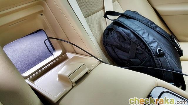 ตรงคอนโซลกลางออกแบบฐานเกียร์ใหม่เพิ่มถุงคลุมหนังแท้และดีไซน์ตัวบอกตำแหน่งเกียร์ได้สวยงามมากขึ้น ด้านข้างมีฝาปิดที่วางแก้วน้ำ ถัดมามาแท่นชาร์จโทรศัพท์แบบไร้สาย ระบบแอร์อัตโนมัติแยกปรับอุณหภูมิซ้าย-ขวา แต่น่าเสียดายที่ไม่มีระบบเบรกมือไฟฟ้าต้องใช้เท้าเหยียบแทน ซึ่งก็พอที่จะใช้งานได้ไม่ยาก ระบบเบรก (เท้า) มือแบบนี้มักอยู่ในรถรุ่นใหญ่ๆ ของญี่ปุ่น