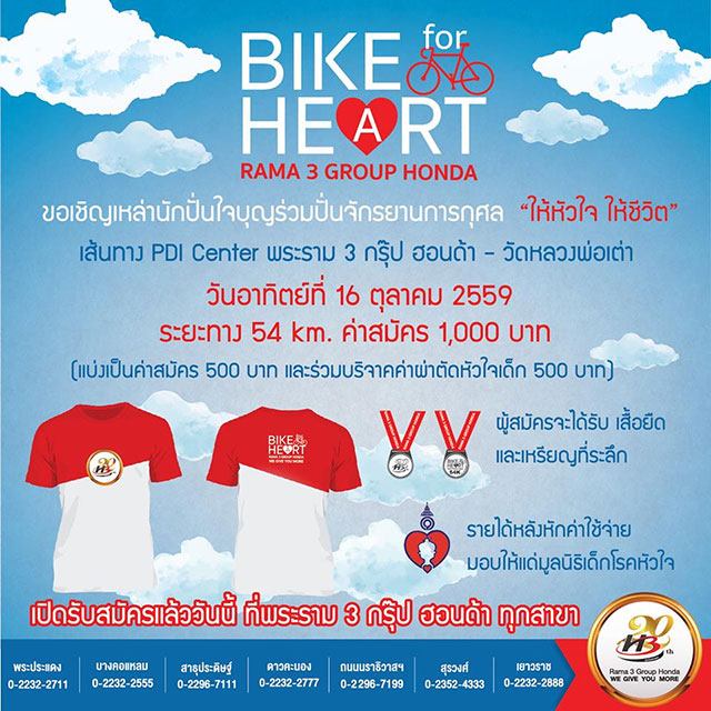 พระราม 3 กรุ๊ป ฮอนด้า ขอเชิญร่วมปั่นจักรยานการกุศล "ให้หัวใจ ให้ชีวิต" "Bike For Heart"