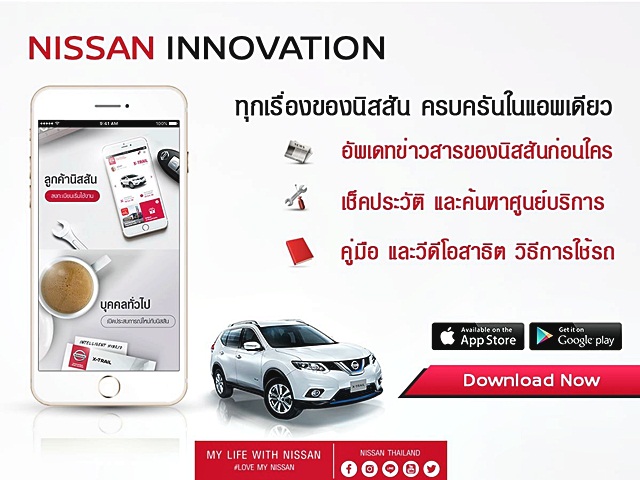 บริษัท นิสสัน มอเตอร์ (ประเทศไทย) จำกัด แนะนำ แอปพลิเคชันอัจฉริยะ "นิสสัน อินโนเวชัน (Nissan Innovation)" เพิ่มช่องทางการติดต่อสื่อสารทันสมัย ตอบสนองไลฟ์สไตล์คนรุ่นใหม่ เพิ่มความสะดวกสบายมากขึ้นจากบริการที่เข้าถึงลูกค้าแต่ละคนโดยเฉพาะ รวมถึงกลุ่มผู้ที่สนใจในข้อมูลผลิตภัณฑ์ของนิสสันและข้อเสนอต่างๆ เริ่มดาวน์โหลดได้แล้ววันนี้