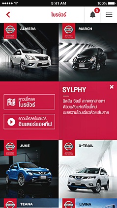 ขณะเดียวกันแอปพลิเคชันอัจฉริยะนี้ ยังสามารถให้ข้อมูลและบริการที่เป็นประโยชน์สำหรับผู้ที่กำลังสนใจในยนตรกรรมชั้นยอดจากนิสสัน ได้มากมาย อาทิ โบรชัวร์ออนไลน์ในรูปแบบอินเตอร์แอคทีฟ ที่จะเพิ่มความเข้าใจในทุกๆ ฟีเจอร์ของรถ พร้อมตารางเปรียบเทียบสเปคในรถนิสสันแต่ละรุ่นอย่างชัดเจน และโปรโมชั่นและข้อเสนอสุดพิเศษต่างๆ พร้อมเครื่องมือคำนวณค่างวดที่ให้ความสะดวกในเบื้องต้นกับผู้ที่สนใจซื้อรถยนต์ และฟังก์ชันสำหรับนัดหมายทดลองขับอีกด้วย