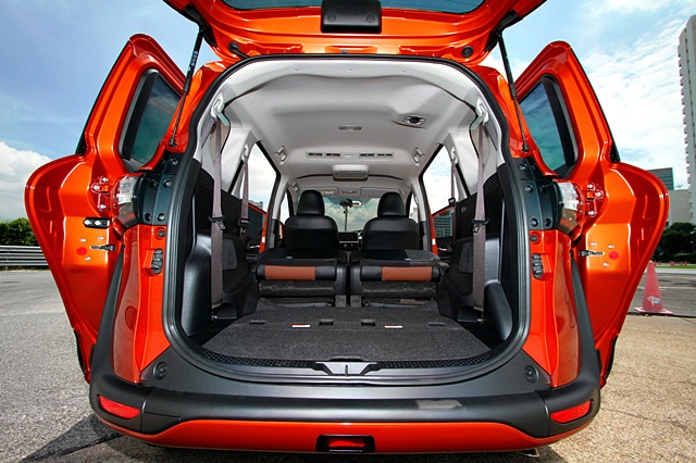 ความโดดเด่นด้านหลังอีกอย่างคือ การเปิดฝาท้ายสูงจนตั้งฉากกับตัวรถและขนานกับพื้น ทำให้ขนสัมภาระขึ้น-ลงรถสะดวก