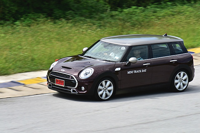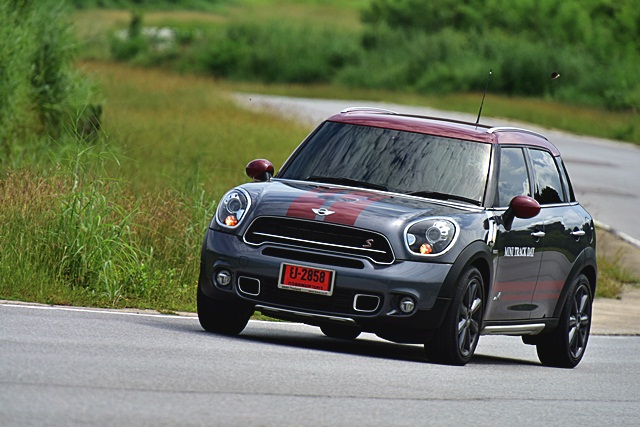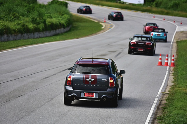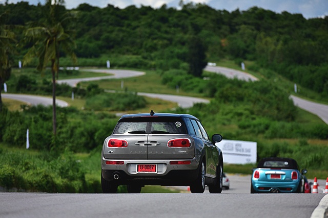 มินิ คูเปอร์ เอส คลับแมน ตัวยาวสุดในกลุ่ม แต่มีระดับรถที่ต่ำเทียบเท่ามินิรุ่นปกติ รุ่นที่ทดสอบในสนามนี้ใช้เครื่องยนต์เบนซิน 4 สูบ เทอร์โบ 192 แรงม้า หรือตัวเดียวกับ คูเปอร์ เอส สมรรถนะเครื่องยนต์เร่งดี ตอบสนองได้ทันใจเกิดคาด ความยาวตัวรถไม่ทำให้การทรงตัวด้อยลงแต่อย่างใด กลับขับง่ายและสนุกมากขึ้นด้วยซ้ำ ทั้งระบบช่วงล่างที่แน่นหนึบ พวงมาลัยที่เฉียบคม สามารถใช้ความเร็วขับตาม Instructor ได้สบายๆ แน่นอนว่าอัตราเร่งแรงขึ้นกว่าเจ้า คูเปอร์ เอสดี ออลโฟร์ คันทรีแมน จึงเข้าโค้งได้ไว้และเร็วมากขึ้น แต่ก็ให้การเกาะถนนที่ดีเช่นกัน พวงมาลัยก็ควบคุมทิศทางได้ฉับไว้ และเมื่อออกตัวจากโค้งสามารถไต่ระดับความเร็วรวดเร็ว นับว่าเริ่มขับสนุกมากขึ้นเรื่อยๆ