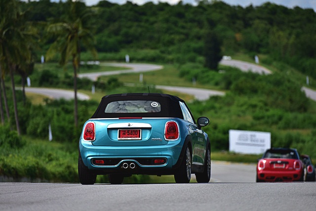 การทดลองขับบนถนนจากกรุงเทพฯ - แก่งกระจาน จ.เพชรบุรี ในมินิ คูเปอร์ เอส คอนเวอร์ทิเบิล มีความโดดเด่นมาเมื่อเปิดหลังคาและขับตามท้องถนน กระจกบังลมหน้า และเมื่อเลื่อนกระจกด้านข้างขึ้นทั้งหมดก็ลดแรงลมปะทะได้มากทีเดียว ส่วนพละกำลังนั้น 192 แรงม้า มีแรงบิด 280 นิวตันเมตร ที่สามารถเรียกรอบและอัตราเร่งแซงได้อย่างรวดเร็ว พร้อมเสียงท่อไอเสียเมื่อเปลี่ยนเกียร์หรือลากรอบสูงที่ดุดดัน ได้อารมณ์ความสปอร์ตเต็มรูปแบบ