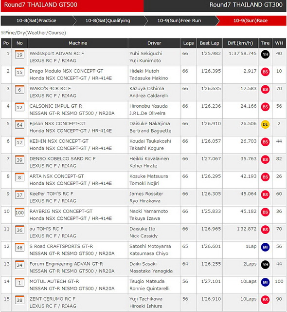 นับเป็นผลงานยอดเยี่ยมของรถแข่ง ฮอนด้า เอ็นเอสเอ็กซ์ คอนเซปต์-จีที จากทีม ดราโก โมดูโล ฮอนด้า เรซซิ่ง หมายเลข 15 ขับโดยฮิเดกิ มูโตะ และทาดาซูเกะ มาคิโนะ ที่ผงาดคว้าอันดับ 2 ได้ขึ้นโพเดียมฉลองชัยอย่างยิ่งใหญ่ ขณะเดียวกันแฟนมอเตอร์สปอร์ตในสนามก็มีโอกาสได้ดูรายการฮอนด้า แจ๊ซ ซูเปอร์ คัพ ที่จัดแข่งถึง 3 เรซ ในช่วงสุดสัปดาห์ 8-9 ตุลาคมที่ผ่านมา โดยมี มานะ พรศิริเชิด ชนะ 2 เรซ ส่วน ภัทรพล วงษ์ไพร ชนะในเรซ 2