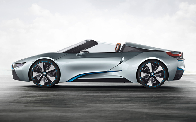 ภาพของ BMW i8 Spyderหลังจากเปิดตัว i8 Spyder Concept ไปเมื่อ 4 ปีที่แล้วในงานปักกิ่ง มอเตอร์ โชว์ ล่าสุด เฮรัลด์ ครูเกอร์ CEO ของ BMW ก็ออกมาเผยข่าวดีว่า พวกเขาเตรียมผลิต i8 Roadster ในปี 2018 โดยใช้แพลตฟอร์มของ i8 ที่ขับเคลื่อนด้วยมอเตอร์ไฟฟ้า และเครื่องยนต์แก๊สโซลีน คู่กับแบตเตอรี่ลิเธียม-ไอออน อาจมีพลังสูงถึง 400 แรงม้า
