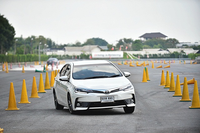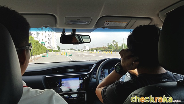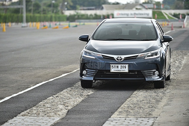 โดยแบ่งเป็นการทดสอบในสนาม Toyota Experience Park บางนากม.3 เพื่อขับผ่านจุดทดสอบระบบควบคุมการทรงตัว ระบบควบคุมล้อหมุนฟรีเมื่อถนนเปียกลื่น ด้วยลานกระเบื้องที่ถูกฉีดน้ำให้ชุ่ม ซึ่งเมื่อขับอัลติส ใหม่เข้าสู่ลานพื้นเปียกด้วยการเบรกแบบเต็มแรง ระบบ ABS และ TRC ทำงานผสานกันได้ดี หลังจากเบรกจนหยุดนิ่ง ก็เร่งเครื่องยนต์มิดคันเร่งเพื่อดูการทำงานของระบบควบคุมล้อหมุนฟรี แม้ว่าจะเหยียบคันเร่งจนมิด แต่ระบบก็ค่อยๆ ประคองรถให้สามารถขับผ่านกรวยยางแบบสลาลอมได้อย่างง่ายดาย หลังจากนั้นเดินทางโดยรถตู้เพื่อเข้าสู่ที่พักโรงแรม โซ โซฟิเทล หัวหิน เพื่อรอทดสอบขับกลับกรุงเทพฯ ในวันถัดไป ซึ่งเป็นการแบ่งกลุ่มทดสอบเป็น 2 กลุ่ม ขับไปและขับกลับสลับกัน ทีมงานเช็คราคา.คอมได้ขับขากลับ