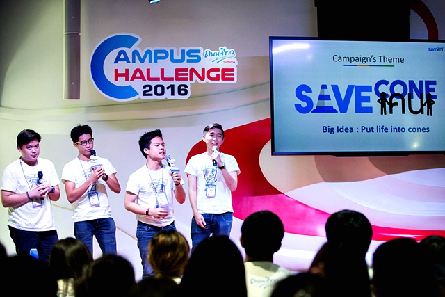 Campus Challenge หนึ่งในกิจกรรมภายใต้โครงการโตโยต้าถนนสีขาว โดย บริษัท โตโยต้า มอเตอร์ ประเทศไทย จำกัด ดำเนินมาถึงปีที่ 3 ซึ่งปีนี้ได้ผู้ชนะคือ ทีม AVEM (ชยกร สุทธิสิริ / โชคชัย ธีระจันทเศรษฐ / พอล เวียนนี ลาปุส มาริสเตล่า / กฤษณ์ โสภาราษฎณ์) จากคณะบริหารธุรกิจและเศรษฐศาสตร์ มหาวิทยาลัยอัสสัมชัญที่นำแคมเปญ "เซฟโคน เซฟคน (save cone save khon)" พร้อมไอเดีย put life into cones ฝ่าฟันหลายร้อยแผนงานจากทีมอื่นๆ ที่เข้าร่วมประกวดในรอบต่างๆ จนชนะใจกรรมการในที่สุด และได้รับทุนการศึกษา 100,000 บาท, ทุนสนับสนุนอาจารย์ที่ปรึกษา 50,000 บาท, รางวัลทริปทัศนศึกษาที่ประเทศญี่ปุ่น พร้อมโอกาสฝึกงานที่บริษัท โตโยต้า มอเตอร์ ประเทศไทย จำกัด รวมมูลค่าทั้งหมดกว่า 600,000 บาท