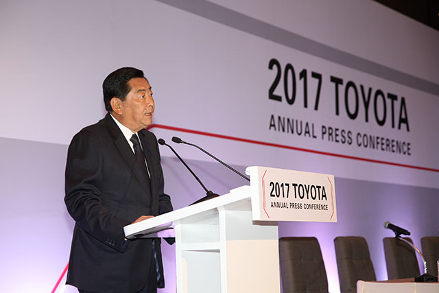มร.เคียวอิจิ ทานาดะ เจ้าหน้าที่บริหาร บริษัท โตโยต้า มอเตอร์ คอร์ปอเรชั่น และกรรมการผู้จัดการใหญ่ บริษัท โตโยต้า มอเตอร์ ประเทศไทย จำกัด แถลงสถิติการจำหน่ายรถยนต์ปี 2559 พร้อมคาดการณ์ตลาดรถยนต์ไทยปี 2560