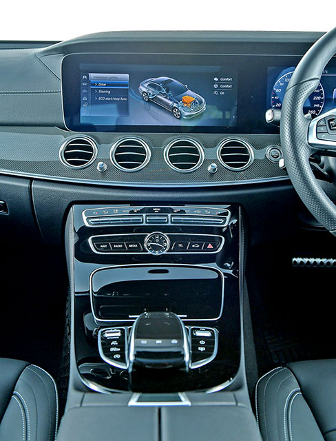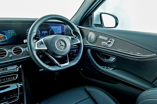 ขณะที่รุ่น The E 220 d AMG Dynamic จะมาพร้อมกับเบาะนั่งหุ้มหนัง nappa, พวงมาลัยมัลติฟังก์ชั่นแบบสปอร์ตท้ายตัดหุ้มหนัง nappa, ชุดหน้าจอความละเอียดสูงและหน้าจอดิจิตอลขนาด 12.3 นิ้ว จำนวน 2 จอ โดยหน้าจอทั้งสองจะอยู่ติดกันและมีลักษณะลอยตัวแบ่งการแสดงผลเป็น 2 ส่วน คือ แผงหน้าปัดสำหรับแสดงมาตรวัดต่างๆ ซึ่งเป็นหน้าจอแบบ Wide screen ขนาดใหญ่เพื่อให้ผู้ขับขี่มองเห็นได้ชัดเจน และอีกส่วนหนึ่งจะเป็นหน้าจออินโฟเทนเมนต์ ผู้ขับขี่สามารถเลือกรูปแบบของแผงหน้าปัดได้ 3 แบบ ได้แก่ แบบคลาสสิก แบบสปอร์ต และแบบ Progressive ซึ่งนับเป็นครั้งแรกของรถยนต์ในเซ็กเมนต์นี้ที่มีการติดตั้งจอดังกล่าว รวมถึงระบบชาร์จโทรศัพท์มือถือแบบไร้สาย (Wireless Charging) เป็นต้น นอกจากนี้ สำหรับรถยนต์รุ่น The E 220 d AMG Dynamic ที่ประกอบในประเทศไทย จะมาพร้อมกับระบบแสดงผลข้อมูลการขับขี่บนกระจกบังลมหน้า (Head-up Display)