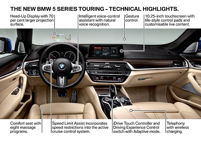 Series 5 Touring ใหม่ ใช้เทคโนโลยีทันสมัยเช่นเดียวกับรุ่นซีดาน อย่างระบบอินโฟเทนเมนต์ใหม่ก็ให้จอแสดงภาพขนาด 10.25 นิ้ว และปุ่มควบคุม ตลอดจนเทคโนโลยีด้านความปลอดภัยอย่างครบครัน
