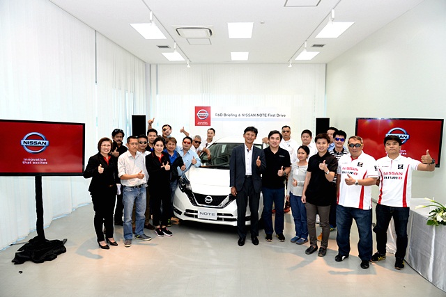 ก่อนเริ่มกิจกรรมขับ Note ใหม่ ทาง มร. ซาโตรุ มิโซกูชิ (Mr. Satoru Mizoguchi) รองกรรมการผู้จัดการใหญ่ บริษัท นิสสัน มอเตอร์ เอเซีย แปซิฟิก จำกัด ได้ออกมากล่าวก่อนว่า "ศูนย์วิจัยและพัฒนาได้ทำงานกันอย่างหนัก เพื่อให้ทราบถึงความต้องการของผู้บริโภคชาวไทย ในทุกๆ การพัฒนา เราจะมุ่งไปที่ประโยชน์ที่จะเกิดขึ้นกับลูกค้า ซึ่งในส่วนของนิสสัน โน๊ต นี้มีความชัดเจน โดยเฉพาะเทคโนโลยีความปลอดภัยอัจฉริยะต่างๆ ที่ได้มีการบรรจุใน นิสสัน โน๊ต ไม่ว่าจะเป็นระบบช่วยเตือนก่อนการชนด้านหน้าอัจฉริยะ (Intelligent Forward Collision Warning) และระบบช่วยเบรกฉุกเฉินอัจฉริยะ (Intelligent Emergency Braking) เพื่อให้เซ็นเชอร์จากกล้องด้านหน้ารถสามารถตรวจจับบุคคล และยานยนต์บริเวณหน้ารถ ที่มีความเหมาะสมกับรูปแบบการจราจรของถนนในเมืองไทยได้อย่างแม่นยำ รวมไปถึงการนำเสนอระบบ D-Step logic ที่ยกระดับของระบบส่งกำลังแบบ CVT ที่มีความนุ่มนวลให้ตอบสนองการขับขี่แบบสปอร์ตมากขึ้น โดยทั้งหมดนี้ถือเป็นความภาคภูมิใจของเรา"