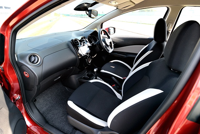 การทดลองขับ ทีมผู้จัดได้แบ่งให้สื่อมวลชนนั่งขับไปพร้อมกับเจ้าหน้าที่เพื่อแนะนำเส้นทางและการทำงานของเทคโนโลยีความปลอดภัย เช่น ระบบเตือนเมื่อรถออกนอกเส้นทาง (Lane Departure Warning - LDW) เมื่อมีการเปลี่ยนช่องทางกะทันหันโดยไม่ได้ตั้งใจหรือไม่ให้สัญญาณไฟเลี้ยว ระบบจะเตือนผู้ขับขี่ด้วยเสียงและสัญญาณไฟที่บริเวณหน้าปัด โดยจะทำงานที่ความเร็วมากกว่า 70 กม./ชม. ซึ่งผู้เขียนพบว่า ขณะขับรักษาความเร็ว 70 กม./ชม. ผ่านเข้ากรวยซึ่งจำลองรูปแบบการเปลี่ยนเลนในแทร็คเอาไว้ ระบบฯ ก็เตือนด้วยเสียงซึ่งอาจจะเบาไปบ้าง แต่อย่างไรก็ตาม Nissan Note เป็นรถรุ่นแรกที่ติดตั้งระบบนี้ในกลุ่มคอมแพกต์แฮตช์แบ็กเมืองไทย
