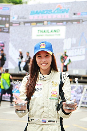 แดริล โอยัง แคท ณัฐนิช ลีวัฒนะกุล สำหรับสาวน้อยนักแข่งขวัญใจหนุ่มๆก็ไม่ทำให้แฟนๆ ผิดหวัง แคท ณัฐนิช ลีวัฒนะกุล หมายเลข 96 สังกัด Morin Top1 RMI Racing Team (โมริน ท็อปวัน อาร์เอ็มไอ เรซซิ่ง ทีม) ในรุ่น Super Production Class B เข้ามาเป็นอันดับที่ ทำเวลาได้ 31.10.589 นาที ส่วนพลอย ธัชพรรณ วิจิตรานนท์ หมายเลข 44 สังกัด Innovation Motorsport (อินโนเวชั่น มอเตอร์สปอร์ต) ที่คะแนนนำโด่งมาตั้งแต่ต้นในรุ่น Super Compact Class C เข้าเส้นชัยมาเป็นอันดับที่ 1 ทำเวลาได้ 18.56.359 นาที
