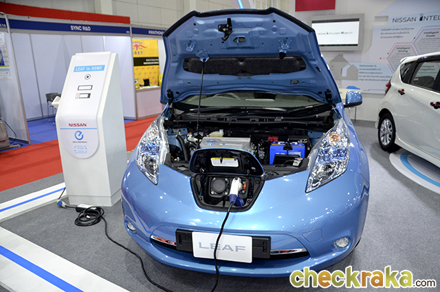 นิสสัน นำ Nissan Leaf (นิสสัน ลีฟ) มาโชว์ ความโดดเด่นของนิสสัน ลีฟ คือ ออกแบบให้ใช้งานง่าย สะดวก สามารถชาร์จได้ทั้งไฟบ้านทั่วไป สามารถขับได้ไกลถึง 160 กิโลเมตร ต่อการชาร์จเต็ม 1 ครั้ง ซึ่งเป็นระยะทางที่เพียงพอสำหรับการใช้งานโดยเฉลี่ยในแต่ละวัน อีกทั้งยังขับขี่ได้สนุก คล่องตัว ให้แรงบิดที่สูงทำให้มีอัตราเร่งที่ดีมาก โดยเมื่อขับลงในเส้นทางลาดชันหรือมีการลดความเร็ว มอเตอร์ไฟฟ้าจะสลับการทำงานเพื่อเก็บสะสมพลังงานกลับเข้าสู่แบตเตอรี่