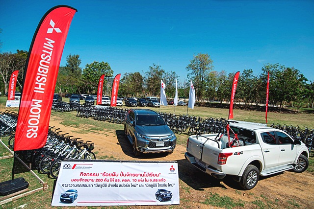 "ร้อยฝัน ปั่นจักรยานไปเรียน" มอบจักรยานให้ รร.ตชด. ที่ จ.สระแก้ว บนเส้นทางกรุงเทพฯ-สระแก้ว รวมกว่า 400 กิโลเมตร เพื่อสัมผัสเทคโนโลยีและอุปกรณ์อำนวยความสะดวกที่เพิ่มขึ้น โดยรถทดสอบรวม 8 คัน มิตซูบิชิ ปาเจโร สปอร์ต 3 คัน และ ไทรทัน 5 คัน