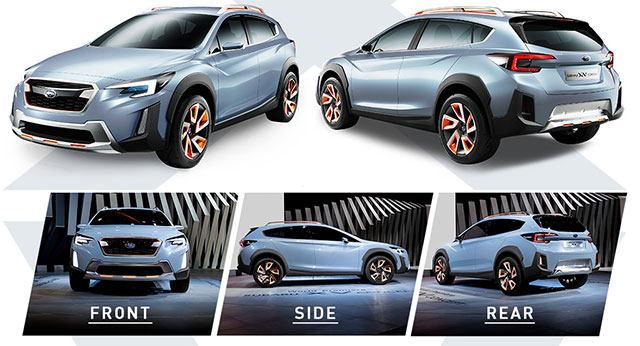 รูปลักษณ์ที่ปราดเปรียวของ XV เน้นความเป็นรถสปอร์ตสไตล์ Crossover บนรูปลักษณ์ที่กะทัดรัดขึ้น ด้านหน้ารถติดตั้งตะแกรงหน้าทรงหกเหลี่ยมที่เป็นเอกลักษณ์ของซูบารุ สอดรับกับไฟหน้าทรงตาเหยี่ยวแบบเดียวกับรุ่น Impreza ตกแต่งซุ้มล้อและกันชนหน้า-หลัง ด้วยสีดำด้าน ความกว้างตัวรถเพิ่มจากรุ่นเดิม 20 มม. ขณะที่ความสูงจากพื้นยังคงไว้ที่ 200 มม.