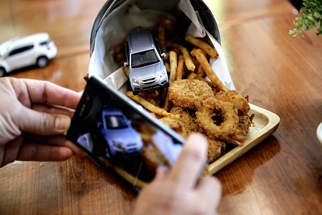 การเดินทางเริ่มต้นจาก บริษัท ตรีเพชร อีซูซุเซลส์ จำกัด ขบวนรถมิว-เอ๊กซ์ มุ่งหน้าไปทำเวิร์คช็อปถ่ายรูปอาหารที่ร้าน Pata Plantation ในซอยติวานนท์-ปากเกร็ด 56 ซึ่งเป็นร้านอาหารอิตาเลียนโฮมเมดในคอนเซปต์ Family Dining ที่ทุกเมนูผ่านการคิดค้นและควบคุมคุณภาพทุกขั้นตอนเสมือนทำอาหารให้คนในครอบครัวรับประทาน เพื่อเวิร์คช็อปถ่ายภาพอาหารสุดชิค โดยใช้สมาร์ทโฟน ส่วนผู้ให้ความรู้และหลักการถ่ายขั้นพื้นฐานเป็นคุณมด-มนัญญา ช่างภาพจากนิตยสารแฟชั่นฯ ขั้นพื้นฐาน เพื่อจะได้ "แชะ แอนด์ แชร์" ภาพอาหารจานโปรดลงบนโซเชียลได้สวยที่สุด