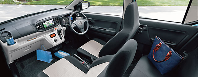ภายในปรับปรุงใหม่หมด ตกแต่งด้วยสีทูโทนดำสลับสีครีม พวงมาลัยดีไซน์ใหม่ มาพร้อมมาตรวัดดิจิตอล พร้อมจอแสดงผล Multi Information Display และระบบแสดงสถานะ ECO Drive Assist ส่วนออปชั่นนั้นทาง Daihatsu อัดมาให้อย่างเต็มที่ อาทิ ระบบแอร์แบบดิจิตอล ระบบ Start/Stop ไฟหน้าเปิด-ปิด อัตโนมัติ เบาะนั่งปรับได้หลากหลายการใช้งาน และจุดเก็บของที่มีให้อย่างจุใจ เป็นต้น