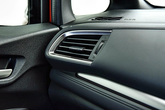 ภายในสวยสดใสด้วยคอนโซลหน้าสลับด้วยวัสดุ Soft Touch มาตรวัดเรืองแสงพร้อมจอแสดงผลการทำงานต่างๆ พวงมาลัยยูรีเทนฉีดขึ้นรูปมัลติฟังก์ชั่นพร้อมปุ่มควบคุมเครื่องเสียง ครุซคอนโทรล ปุ่มรับ-วางสายโทรศัพท์ และแพดเดิ้ลชิฟต์ เบาะนั่งลายใหม่เดินด้ายสีส้มสไตล์สปอร์ต แผงประตูบุผ้าลายเดียวกับเบาะ และในรุ่น RS+ นี่เพิ่มมือจับด้านคนขับมาให้ด้วย พร้อมปุ่ม Econ ช่วยในการขับขี่ในรูปแบบประหยัดน้ำมัน