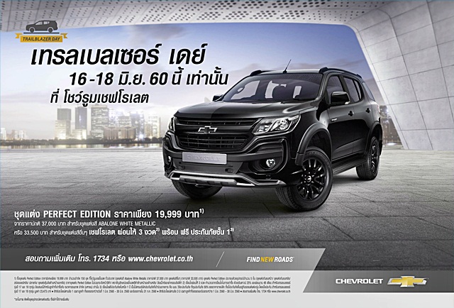 Chevrolet Trailblazer ภายในงาน "เทรลเบลเซอร์ เดย์" ที่จัดขึ้นเป็นครั้งแรกที่ผู้จัดจำหน่ายทั่วประเทศระหว่างวันศุกร์ที่ 16 ถึง วันอาทิตย์ที่ 18 มิถุนายน 2560