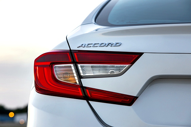 ด้านท้ายตั้งรับกับแนวหลังคา เด่นด้วยฝาท้ายทรงตูดเป็ด ไฟส่องสว่างด้านหลังเป็นแอลอีดีเช่นกัน ฮอนด้าบอกว่า การออกแบบทำให้แอโรไดนามิกโดยรวมดีขึ้น 3% นับเป็นแอคคอร์ดที่แหวกอากาศได้ดีที่สุดนับตั้งแต่ทำมา