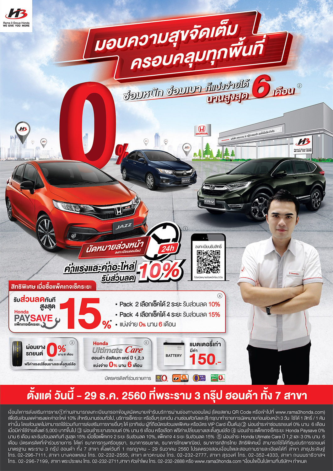 รีบเข้ารับบริการพิเศษดีๆ ที่บริษัท พระราม 3 กรุ๊ป ฮอนด้า ออโตโมบิล จำกัด ได้ทั้ง 7 สาขา ได้แก่