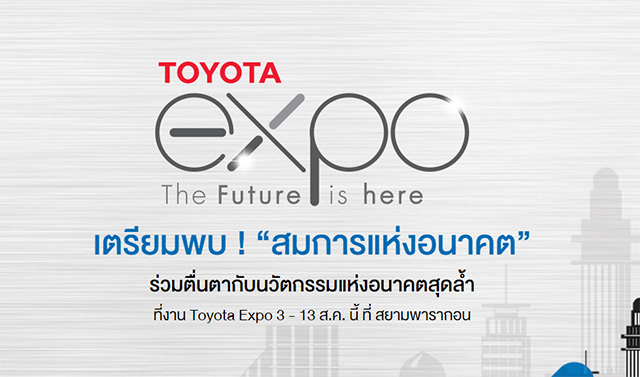 โตโยต้า จัดใหญ่กับสุดยอดงานแสดงนวัตกรรมแห่งปี TOYOTA EXPO "The future is Here" ภายในงานพบกับ "สมการแห่งอนาคต" ร่วมตื่นเต้นกับนวัตกรรมแห่งอนาคตสุดล้ำ ตื่นตากับ 4 โซนข้อมูลความรู้