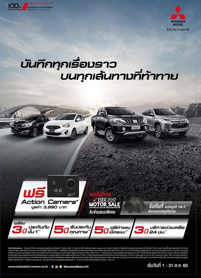 บริษัท มิตซูบิชิ มอเตอร์ส (ประเทศไทย) จำกัด พร้อมตอบสนองทุกการใช้งานรถยนต์ของลูกค้าด้วยการจัดแสดง ปาเจโร สปอร์ต รุ่นใหม่, ไทรทัน รุ่นใหม่, แอททราจ รุ่นใหม่ และ มิราจ รุ่นใหม่ ในงาน Big Motor Sale 2017 ทุกรุ่นได้รับการการันตีถึงความเป็นยนตกรรมชั้นนำด้วยการคว้ารางวัล บิ๊ก เบสท์ คาร์ ออฟ เดอะ เยียร์ 2016 - 2017 ถึง 3 รางวัล โดยภายในงานยังมีข้อเสนอพิเศษมากมายให้คุณเป็นเจ้าของรถยนต์ มิตซูบิชิ ได้ง่ายขึ้น