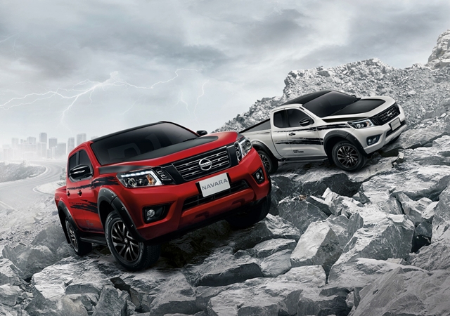 Nissan Navara มอบส่วนลดสูงสุด 80,000 บาท พร้อมฟรีประกันภัยชั้น 1 หล่อๆ กับ Navara Black Edition มีการตกแต่งให้เข้มแกร่งแตกต่างจากเดิม ด้วยชุดแต่งสีดำดุดันรอบคัน ไม่ว่าจะเป็นไฟหน้าแบบ LED สีดำ, กระจังหน้าสีดำ, กรอบไฟตัดหมอกสีดำ, กระจกมองข้างและมือจับประตูสีดำ, บันไดข้างสีดำ, กันชนหลังสีดำ และเสาอากาศแบบ Shark Fin สีดำ เสริมบุคลิกเฉพาะตัวที่ด้านข้างด้วยลวดลายกราฟิตี้ดีไซน์สีดำพร้อมสัญลักษณ์ Black Edition แกร่งเข้มเฉพาะตัวด้วยล้ออัลลอยด์สีดำขนาด 18 นิ้ว ชุดแต่งซุ้มล้อสีดำขนาดใหญ่ นาวารายังพร้อมตอบสนองให้เจ้าของลุยไปทุกที่ ด้วยช่วงล่างที่ใช้แชสซีส์เหล็กกล้าชิ้นเดียวตลอดคัน อันเป็นจุดเด่นที่ผู้ใช้ทั่วโลกต่างยอมรับในความแข็งแกร่งทนทาน