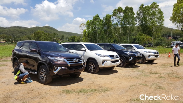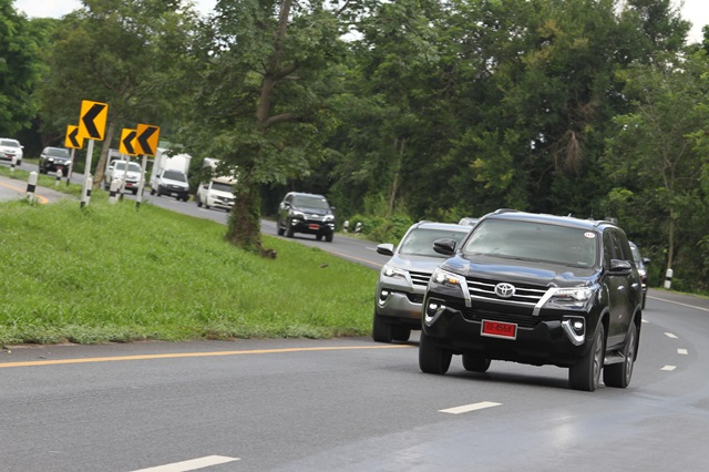 สำหรับในกลุ่มทดสอบครั้งมีรถทั้งหมดกว่า 10 คันทั้ง Toyota Fortuner 2.4V 4WD ใหม่ และ Toyota Fortuner 2.8V 4WD ให้ร่วมทดสอบกันโดยใช้เส้นทางกรุงเทพฯ - เขาใหญ่ รวมระยะทางทั้งหมดกว่า 400 กิโลเมตร