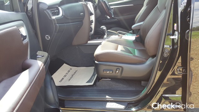 ความสะดวกสบายในทั้ง 2 รุ่นเครื่องยนต์นับว่าไม่แตกต่าง เพราะให้ออปชั่นมาแบบจัดเต็ม โดยรุ่น 2.4 ลิตร โทนสีเบาะภายในจะเป็นน้ำตาลเข้ม ส่วนรุ่น 2.8 ลิตร จะออกสีครีมสว่างๆ กว่า วัสดุภายในระดับพรีเมียม คอนโซลหน้าถูกตกแต่งด้วยการเดินด้ายจริงๆ ปุ่มควบคุมระบบขับเคลื่อน 4 ล้อแบบมือหมุน มาตรวัดพร้อมจอแสดงผลตรงกลาง ไม่ต่างจากรุ่นก่อนหน้านี้