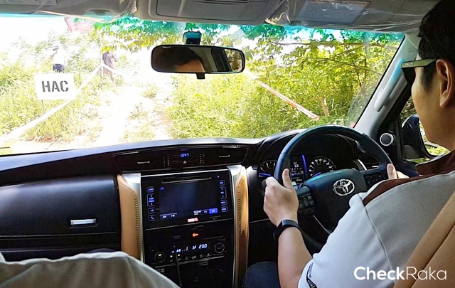 ทีมงานเช็คราคา.คอม ได้ขับรุ่น 2.8 ลิตร เริ่มแรกเป็นการทดสอบระบบช่วยควบคุมความเร็วขณะลงทางลาดชัน HAC ซึ่งใส่ตำแหน่งระบบขับเคลื่อน 4 ล้อ แบบ L4 และผลักคันเกียร์ไปที่โหมด "S" และใช้เกียร์ 1 เท่านั้น โดยการไต่ขึ้นเนินสูงมากๆ และช่วงขาลงก็ปล่อยรถให้ไหลไปตามความชัน ซึ่งรถสามารถควบคุมความเร็วและไหลต่อเนื่องได้ดี