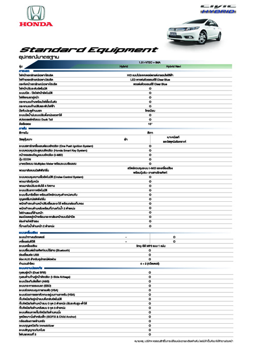 ฮอนด้า ซีวิค ไฮบริด ใหม่ ด้วยดีไซน์ของซีวิครุ่นล่าสุดที่ผสานเทคโนโลยีเพื่อโลกสวยไว้อย่างลงตัว โดดเด่นด้วยกระจังหน้า ไฟหน้าโปรเจคเตอร์พร้อมกรอบสีฟ้า ไฟท้ายแอลอีดีพร้อมเลนส์สีเคลียร์บลู สปอยเลอร์หลัง ล้ออัลลอยดีไซน์พิเศษครบครันด้วยเทคโนโลยีอัจฉริยะ และระบบความปลอดภัยเต็มพิกัด พร้อมนำแบตเตอรี่ลิเธียมไอออนมาใช้กับรถยนต์ไฮบริดที่ผลิตในไทยเป็นรายแรก ฮอนด้า ซีวิค ไฮบริด ใหม่ มี 2 รุ่น คือ Hybrid ราคา 1,035,000 บาท