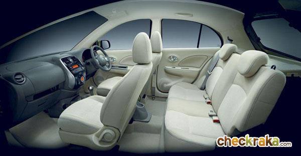 นิสสัน มาร์ช ใหม่ มีระดับด้วยสีภายในใหม่ สีเบจ (เฉพาะรุ่น V และ VL) และวัสดุเบาะที่ได้รับการปรับปรุงให้ดีขึ้นสอดรับความหรูหราของแผงคอนโซล หน้าสีดำ Piano Black ส่วนรุ่น E ยังคงสีภายในสีดำและวัสดุที่ได้รับการปรับปรุงให้ดีขึ้นเช่นกัน ทันสมัยมากขึ้นด้วยแผงแสดงผลหน้าจอล้อมกรอบด้วยโครเมี่ยม สวิตช์ควบคุมเครื่องเสียงบนพวงมาลัย ช่องเชื่อมต่อ USB พื้นที่เก็บสัมภาระจุของได้ถึง 251 ลิตรพร้อมไฟในห้องเก็บสัมภาระ และเบาะหลังปรับแยกพับได้ 60:40