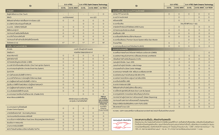 *อุปกรณ์มาตรฐานแตกต่างกันในแต่ละรุ่น