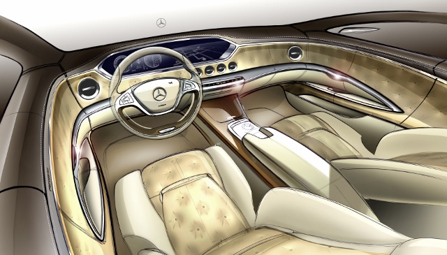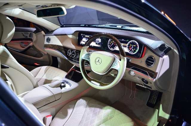 การตกแต่งภายในของ The new S-Class ยังคงเน้นองค์ประกอบที่ผสานเอารูปแบบดั้งเดิม ความหรูหรา และแนวคิดของรถซาลูนรุ่นใหม่ให้เข้ากันได้อย่างกลมกลืนภายใต้แนวคิดความนุ่มสบายขณะขับขี่ ความกว้างขวาง รวมไปถึงอุปกรณ์คุณภาพสูงภายในรถที่สามารถใช้งานได้ง่าย เน้นการใช้วัสดุคุณภาพสูง และการออกแบบที่เน้นการใช้งานได้จริงเป็นหลัก ด้วยลายไม้ที่ได้รับการออกแบบพิเศษ Designo high-gloss sunburst brown myrtle wood แบบ 2 โทนสี (two-tone) รวมทั้งเบาะนั่งหุ้มหนัง Nappa แบบ Exclusive package ตัดเย็บลายเบาะแบบ diamond design พร้อมด้วยผ้าหลังคา และแผงบังแดดด้านหน้าหุ้มด้วย Dinamica microfibre พร้อมด้วยไฟเรืองแสงล้อมรอบห้องโดยสาร (Ambient Lighting) ปรับได้ 7 เฉดสี พวงมาลัยมัลติฟังก์ชั่นหุ้มหนังสลับลายไม้ 2 ก้าน พร้อมพาวเวอร์ที่ปรับน้ำหนักตามความเร็ว ช่วยให้ควบคุมรถแม่นยำและปลอดภัย
