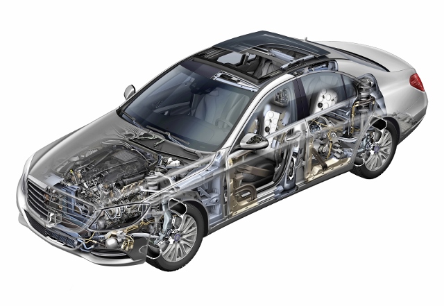 เมอร์เซเดส-เบนซ์ S-Class ใหม่นี้เลือกใช้โครงสร้างแบบอะลูมิเนียมผสม และใช้วัสดุที่มีน้ำหนักเบากว่าที่เคยใช้ในรุ่นก่อนหน้าถึง 95 กิโลกรัม แต่มีความแข็งแกร่ง และทนทานต่อแรงบิดเพิ่มขึ้น 50% ส่วนโครงสร้างของห้องโดยสารนิรภัยนั้นสร้างขึ้นจากเหล็กหล่อที่มีความแกร่งสูง ซึ่งรวมไปถึงการใช้คานนิรภัยที่มีระดับความแข็งแรงเหมาะสมทั้งกับน้ำหนักและขนาดของตัวรถ ซึ่งการใช้วัสดุน้ำหนักเบาเป็นโครงสร้าง การปรับปรุงมิติของโครงสร้าง รวมถึงการใช้เทคโนโลยีการประกอบตัวถังขั้นสูง นับเป็นการพัฒนาไปอีกขั้นของยานยนต์ในกลุ่มซาลูน