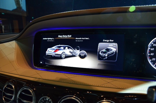 ระบบให้บริการข้อมูลของ The new S-Class จะแสดงผลผ่านหน้าจอดิสเพลย์แบบ TFT ที่มีความละเอียดสูง มีขนาด 31.2 ซม. จำนวน 2 จอ โดยตัวแรกตรงด้านหน้าคนขับ สำหรับให้ข้อมูลการวัดค่าต่างๆ บนแผงหน้าปัด เช่น มิเตอร์วัดความเร็ว ความเร็วรอบ ระยะทางและอื่นๆ ส่วนจอด้านซ้ายสำหรับให้ข้อมูลระบบความบันเทิงต่างๆ รวมถึงการเชื่อมต่ออินเตอร์เน็ต สามารถควบคุมการทำงานจากรีโมทคอนโทล และแป้นควบคุมตรงคอนโซลกลาง ที่นั่งด้านหลังมีจอแสดงผลอีก 2 ตำแหน่ง ขนาด 25.4 ซม. (Individual Entertainment in the rear) ที่ติดตั้งอยู่บริเวณด้านหลังของพนักพิงที่นั่งคู่หน้า ควบคุมแบบแยกอิสระ ระบบ COMAND Online ควบคุมการทำงานของวิทยุ-ดีวีดี และเชื่อมต่ออินเทอร์เน็ตพร้อม Controller และระบบนำทาง (navigation system) พร้อมรีโมทคอนโทรลควบคุมการทำงานของระบบ COMAND Online สำหรับผู้โดยสารด้านหลัง รวมถึงระบบสั่งการด้วยเสียง (LINGUATRONIC) ด้วย