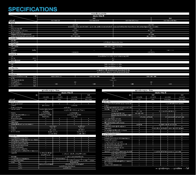 - เครื่องยนต์ ISUZU Ddi 3.0 พร้อม VGS Turbo ขุมพลัง 177 แรงม้า ที่ 3,600 รอบ/นาที แรงบิดสูงสุด 380 นิวตัน-เมตร ที่ 1,800-2,800 รอบ/นาที